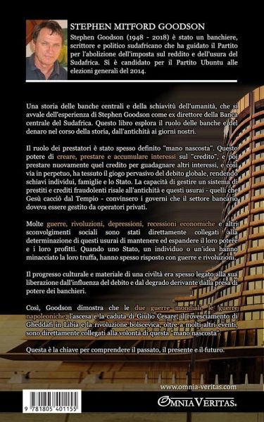 Una storia delle banche centrali e della schiavitù dell'umanità, che si avvale dell'esperienza di Stephen Goodson come ex direttore della Banca centrale del Sudafrica. Questo libro esplora il ruolo delle banche e del denaro nel corso della storia, dall'antichità ai giorni nostri. Il ruolo dei prestatori è stato spesso definito "mano nascosta". Questo potere di creare, prestare e accumulare interessi sul "credito", e poi di prestare nuovamente quel credito per guadagnare altri interessi, e così via in perpetuo, ha tessuto il giogo pervasivo del debito globale, schiavizzando individui, famiglie e lo Stato. La capacità di gestire un sistema di prestiti e crediti fraudolenti risale all'antichità e questi usurai - quelli che Gesù cacciò dal Tempio - convinsero i governi che il settore bancario doveva essere gestito da operatori privati. Molte guerre, rivoluzioni, depressioni, recessioni economiche e altri sconvolgimenti sociali sono stati direttamente collegati alla determinazione di questi usurai di mantenere ed espandere il loro potere e i loro profitti. Quando uno Stato, un individuo o un'idea hanno minacciato la loro truffa, hanno spesso risposto con guerre e rivoluzioni. Il progresso culturale e materiale di una civiltà era spesso legato alla sua liberazione dall'influenza del debito e dal degrado derivante dalla presa di potere dei banchieri. Così, Goodson dimostra che le due guerre mondiali, le guerre napoleoniche, l'ascesa e la caduta di Giulio Cesare, il rovesciamento di Gheddafi in Libia e la rivoluzione bolscevica, oltre a molti altri eventi, sono direttamente collegati alla volontà di questa "mano nascosta". Questa è la chiave per comprendere il passato, il presente e il futuro.