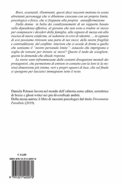 Brevi, essenziali, illuminanti, questi dieci racconti affrontano il tema del superamento dei limiti, psicologici o fisici, che si frappongono alla piena espressione della nostra individualità. Nel flusso di pensiero dei protagonisti delle "Storie al limite" potremo ritrovare una parte di noi stessi, delle nostre fragilità e contraddizioni, della nostra complessità come singoli e come parti in causa di una fitta rete di relazioni umane.