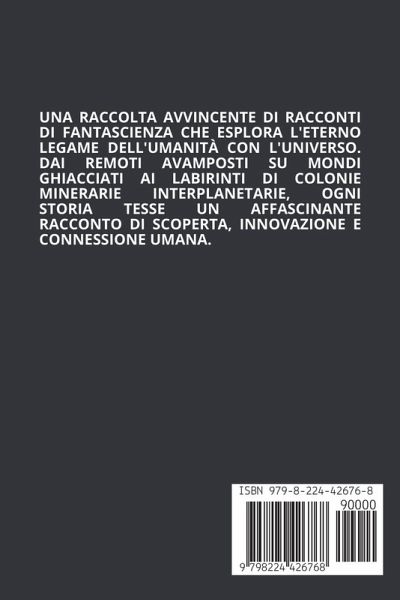 Una raccolta avvincente di racconti di fantascienza che esplora l'eterno legame dell'umanità con l'universo. Dai remoti avamposti su mondi ghiacciati ai labirinti di colonie minerarie interplanetarie, ogni storia tesse un affascinante racconto di scoperta, innovazione e connessione umana.