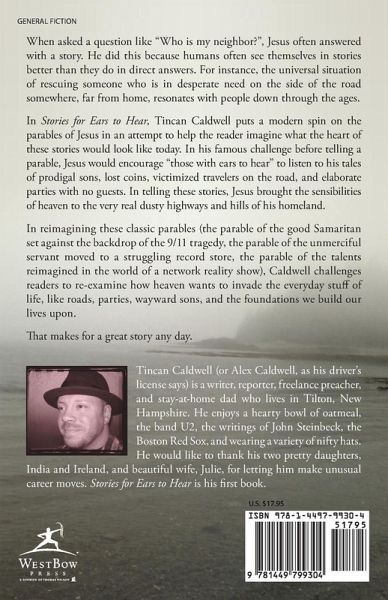 When asked a question like "Who is my neighbor?", Jesus often answered with a story. He did this because humans often see themselves in stories better than they do in direct answers. For instance, the universal situation of rescuing someone who is in desperate need on the side of the road somewhere, far from home, resonates with people down through the ages. In Stories for Ears to Hear, Tincan Caldwell puts a modern spin on the parables of Jesus in an attempt to help the reader imagine what the heart of these stories would look like today. In his famous challenge before telling a parable, Jesus would encourage "those with ears to hear" to listen to his tales of prodigal sons, lost coins, victimized travelers on the road, and elaborate parties with no guests. In telling these stories, Jesus brought the sensibilities of heaven to the very real dusty highways and hills of his homeland. In reimagining these classic parables (the parable of the good Samaritan set against the backdrop of the 9/11 tragedy, the parable of the unmerciful servant moved to a struggling record store, the parable of the talents reimagined in the world of a network reality show), Caldwell challenges readers to re-examine how heaven wants to invade the everyday stuff of life, like roads, parties, wayward sons, and the foundations we build our lives upon. That makes for a great story any day.
