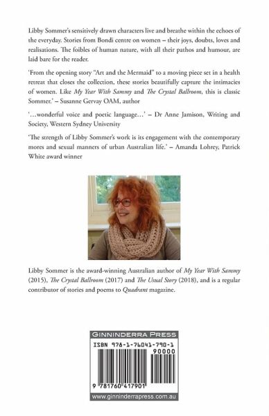 Libby Sommer’s sensitively drawn characters live and breathe within the echoes of the everyday. Stories from Bondi centre on women – their joys, doubts, loves and realisations. The foibles of human nature, with all their pathos and humour, are laid bare for the reader. ‘From the opening story "Art and the Mermaid" to a moving piece set in a health retreat that closes the collection, these stories beautifully capture the intimacies of women. Like My Year With Sammy and The Crystal Ballroom, this is classic Sommer.’ – Susanne Gervay OAM, author ‘…wonderful voice and poetic language…’ – Dr Anne Jamison, Writing and Society, Western Sydney University ‘The strength of Libby Sommer’s work is its engagement with the contemporary mores and sexual manners of urban Australian life.’ – Amanda Lohrey, Patrick White award winner