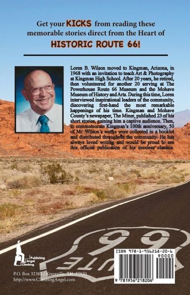 Loren B. Wilson moved to Kingman, Arizona, in 1968 with an invitation to teach Art & Photography at Kingman High School. After 20 years, he retired, then volunteered for another 20 serving at The Powerhouse Route 66 Museum and the Mohave Museum of History and Arts. During this time, Loren interviewed inspirational leaders of the community, discovering first-hand the most remarkable happenings of his time. Kingman and Mohave County's newspaper, The Miner, published 23 of his short stories, gaining him a captive audience. Then, to commemorate Kingman's 100th anniversary, 50 of Mr. Wilson's works were collected into a booklet and distributed throughout the community. He has always loved writing and would be proud to see this official publication of his timeless classics.