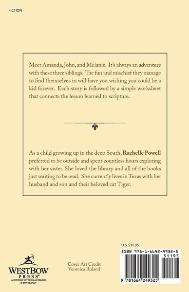 Meet Amanda, John, and Melanie. It's always an adventure with these three siblings. The fun and mischief they manage to find themselves in will have you wishing you could be a kid forever. Each story is followed by a simple worksheet that connects the lesson learned to scripture.