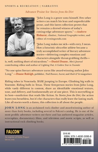 Riding tubes in Venezuela. BASE jumping in Europe. Climbing big walls in Yosemite. Riding bulls in Texas. These first-person stories from acclaimed climber and adventurer John Long may be vastly different in content, but they share an identifiable emotional texture, tone and delivery, and fundamentally are of one piece. This is storytelling at its best—nonfiction that reads like fiction. In Stories from the Dirt, the action leaves you breathless, but it’s the characters that really leave a lasting mark. Like all stories worth a damn, this collection is all about the people.