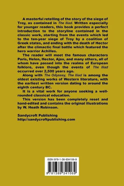 This is a masterful retelling of the story of the siege of Troy, as contained in The Iliad. Written especially for younger readers, this book provides a perfect introduction to the storyline contained in the classic work, starting from the events which led to the ten-year siege of Troy by a coalition of Greek states, and ending with the death of Hector after the climactic final battle which featured the hero warrior Achilles. The reader will meet the famous characters Paris, Helen, Hector, Ajax, and many others, all of whom have passed into the realms of European folklore, even though the events of The Iliad occurred over 2,500 years ago. Along with The Odyssey, The Iliad is among the oldest existing works of Western literature, with the earliest written version dating to around the eighth century BC. It is a vital work for anyone seeking a well-rounded classical education. This version has been completely reset and hand-edited and contains the original illustrations by W. Heath Robinson.