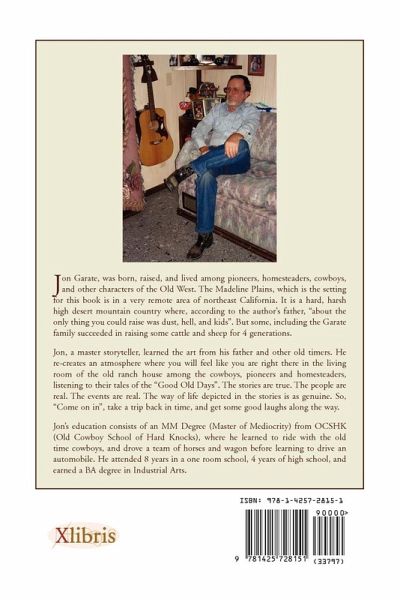 Jon Garate, old time cowboy, recreates an evening of reminiscing in the living room, where the old timers gathered and retold stories of their lives. Stories of one room schools, outhouses, coyotes, cowboys and Indians. Illustrations.