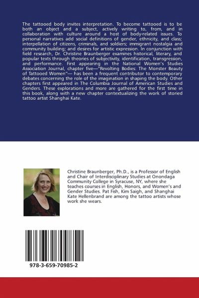 The tattooed body invites interpretation. To become tattooed is to be both an object and a subject, actively writing to, from, and in collaboration with culture around a host of body-related issues. To personal narratives add social definitions of gender, ethnicity, and class; interpellation of citizens, criminals, and soldiers; immigrant nostalgia and community building; and desires for artistic expression. In conjunction with field research, Dr. Christine Braunberger examines historical, literary, and popular texts through theories of subjectivity, identification, transgression, and performance. First appearing in the National Women's Studies Association Journal, chapter five-"Revolting Bodies: The Monster Beauty of Tattooed Women"- has been a frequent contributor to contemporary debates concerning the role of the imagination in shaping the body. Other chapters first appeared in The Columbia Journal of American Studies and Genders. These explorations and more are gathered for the first time in this book, along with a new chapter contextualizing the work of storied tattoo artist Shanghai Kate.