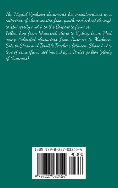 The Digital Spalpeen documents his misadventures in a collection of short stories from youth and school through to University and into the Corporate furnace. Follow him from Shamrock shore to Sydney town. Meet many Colourful characters from Barmen to Madmen, Sots to Slavs and Terrible Teachers between. Share in his love of craic (fun), ceol (music) agus Porter go leor (plenty of Guinness).