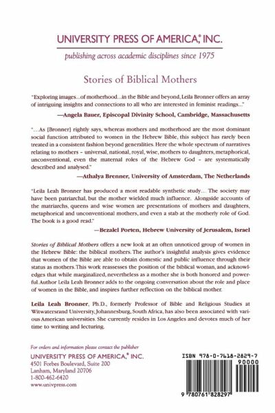 Stories of Biblical Mothers offers a new look at an often unnoticed group of women in the Hebrew Bible: the biblical mothers. The author's insightful analysis gives evidence that women of the Bible are able to obtain domestic and public influence through their status as mothers. This work reassesses the position of the biblical woman, and acknowledges that while marginalized, nevertheless as a mother she is both honored and powerful.