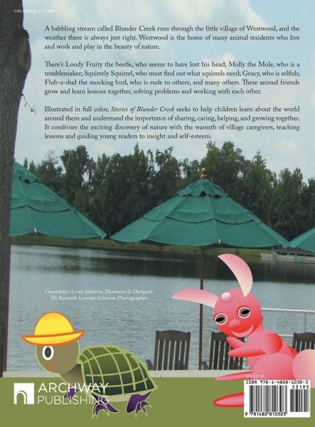 A babbling stream called Blunder Creek runs through the little village of Westwood, and the weather there is always just right. Westwood is the home of many animal residents who live and work and play in the beauty of nature. There's Loody Fruity the beetle, who seems to have lost his head; Molly the Mole, who is a troublemaker; Squirrely Squirrel, who must find out what squirrels need; Grucy, who is selfish; Flub-a-dud the mocking bird, who is rude to others; and many others. These animal friends grow and learn lessons together, solving problems and working with each other. Illustrated in full color, Stories of Blunder Creek seeks to help children learn about the world around them and understand the importance of sharing, caring, helping, and growing together. It combines the exciting discovery of nature with the warmth of village caregivers, teaching lessons and guiding young readers to insight and self-esteem.
