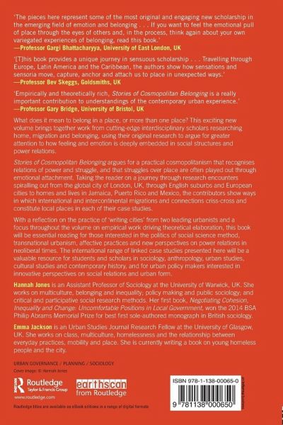 Introduction 1 (Hannah Jones, Emma Jackson and Alex Rhys-Taylor) Introduction 2 (Les Back and Michael Keith) Part 1: Local Worlds/Cosmopolitan Formations: London and/in the World 1. Emotion, Location and Urban Regeneration 2. Intersemiotic Fruit: Mangoes, Multiculture and the City 3. The Pigeon and the Weave: the Middle Classes, Dis/comfort and the Multicultural City Part 2: Places that Don't Exist: England(s) and Elsewheres 4. Uncomfortable Feelings: How Local Belonging Works on Local Policy Makers 5. Dread Culture: Music and Identity in a British Inner City 6. Ambivalent Affect/Emotion: Conflicted Discourses of Multicultural Belonging Part 3: Displacement, its Aftermaths and Futures: Tracing Connections to, from and through Europe 7. Post-Political Narratives and Emotions: Dealing with Discursive Displacement in Everyday Life 8. 'This bridge is just like the one in Visegrad!': Dwelling, Embodying and Doing Home Across Space 9. Diaspora Tours and Place Attachment: a Unique Configuration of Emotion and Location Part 4: Cosmopolitanism in the Home: North American Belongings 10. Crime Watch: Mediating Belonging and the Politics of Place in Inner-City Jamaica 11. Agency, Ambivalence and Emotions in a Public Housing Anti-Demolition Struggle 12. Revolutionary Affect: Feeling Modern in Mexico City 13. Conclusion