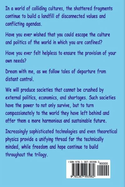 This book contains a fiction trilogy consisting of "Expatriates of Babylon","Arland", and "The Livewood."In a world of colliding cultures, the shattered fragments continue to build a landfill of disconnected values and conflicting agendas. Have you ever wished that you could escape the culture and politics of the world around you? Have you ever felt helpless to ensure the provision of your own needs? Dream with me, as we follow tales of departure from distant control. We will produce societies that cannot be crushed by external politics, economics, and shortages. Such societies have the power to not only survive, but to turn compassionately to the world they have left behind and offer them a more harmonious and sustainable future. Increasingly sophisticated technologies and even theoretical physics provide a unifying thread for the technically minded, while freedom and hope continue to build throughout the trilogy.