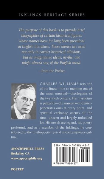 The purpose of this book is to provide brief biographies of certain historical figures whose names have for long been prevalent in English literature. These names are used not only in correct historical allusions, but as imaginative ideas; myths, one might almost say, of the English mind.-from the Preface Charles Williams was one of the finest-not to mention one of the most unusual-theologians of the twentieth century. His mysticism is palpable-the unseen world interpenetrates ours at every point, and spiritual exchange occurs all the time, unseen and largely unlooked for. His novels are legend, his poetry profound, and as a member of the Inklings, he contributed to the mythopoetic revival in contemporary culture.