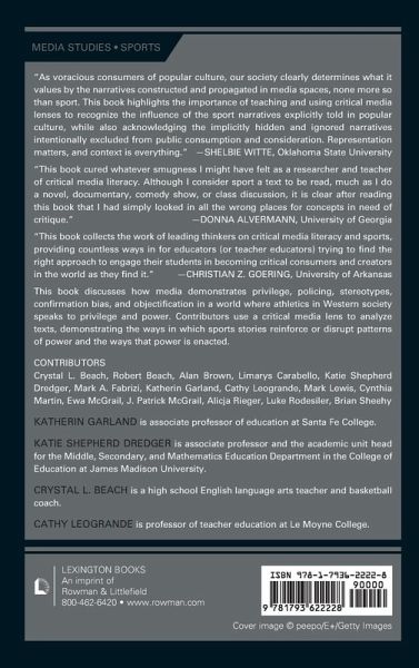 Foreword Andraya N. Carter Introduction Katie Dredger, Crystal L. Beach, Katherin Garland, and Cathy Leogrande Chapter 1: Using Critical Media Literacy Pedagogy to Analyze Colin Kaepernick's Athletic Activism Katherin Garland Chapter 2: Selling Patriotism On and Off the Field: Media Connections Between Baseball, the Military, and the Government Brian Sheehy Chapter 3: Relationships Between Youth-Sports Coaches and Athletes: Messages from the "Best" Sports-Related Films Luke Rodesiler, Mark A. Lewis, and Alan Brown Chapter 4: Truth Be Told: The Mutual Responsibilities of Artists and Consumers Mark A. Fabrizi Chapter 5: Telling the Story of Youth, Sports, and Disability in Friday Night Lights Ewa McGrail, J. Patrick McGrail, and Alicja Rieger Chapter 6: Transforming Diabetes Stigma: The Role of Counternarrative in Sports Media Cynthia Martin Chapter 7: Languaging Actions in Sports Media and Students' Writing About Sports Richard Beach and Limarys Caraballo Chapter 8: Performance, Style