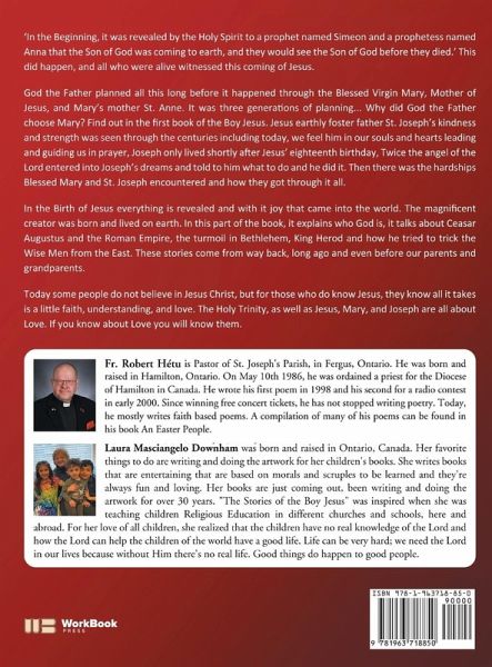 'In the beginning, it was revealed by the Holy Spirit to a prophet named Simeon and a prophetess named Anna that the Son of God was coming to earth, and they would see the Son of God before they died.' this did happen, and all who were alive witnessed this coming Jesus.God the Father planned all this long before it happened through the Blessed Virgin Mary, Mother of Jesus, and Mary's mother St. Anne. It was three generations of planning... Why did God the Father choose Mary? Find out in the first book of the Boy Jesus. Jesus earthly foster father St. Joseph's kindness and strength was seen through the centuries including today, we feel him in our souls and hearts leading and guiding us in prayer, Joseph only lived shortly after Jesus' eighteenth birthday, Twice the angel of the Lord entered into Joseph's dream and told to him what to do and he did it. Then there was the hardships Blessed Mary and St. Joseph encountered and how they got through it all.In the Birth of Jesus everything is revealed and with it joy that came into the world. The magnificent creator was born and lived on earth. In this part of the book, it explains who God is, it talks about Ceasar Augustus and the Roman Empire, the turmoil in Bethlehem, King Herod and how he tried to trick the Wise Men from the East. These stories come from way back, long ago and even before our parents and grandparents.Today some people do not believe in Jesus Christ, but for those who do know Jesus, they know all it takes is a little faith, understanding, and love. The Holy Trinity, as well as Jesus, Mary, and Joseph are all about Love. If you know about Love you will know them.