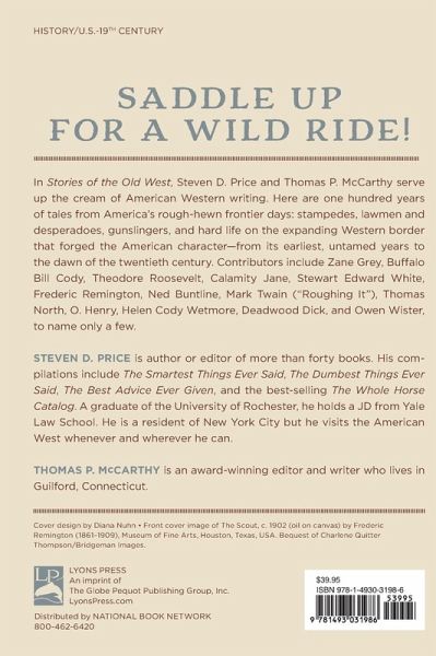 Saddle up for a wild ride through those thrilling days of yesteryear. In Stories of the Old West, Steven Price serves up a heapin' helpin' of tales of America's frontier days: ranches and rodeos, lawmen and desperadoes, saloons and gunslingers, wilderness exploring and range warfare, and everything else that reflects our fascination with our Western heritage from its earliest untamed era to the dawn of the 20th Century. Contributors include Zane Grey, Buffalo Bill Cody, Theodore Roosevelt, Calamity Jane, Stewart Edward White, Frederic Remington, Ned Buntline, Mark Twain (""Roughing It""), Thomas North Willa Cather, Helen Cody Wetmore, O. Henry, Bret Harte and Owen Wister, to name only a few.