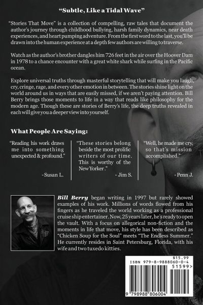 "Every now and then a book comes along that changes everything. For some, this is that book." If you've ever been bullied at school, work, or home, you need this book. If you enjoy laughing until your stomach hurts, you need this book. If you've experienced trauma or PTSD, you need this book. If you want to fall back in love with life, you need this book. "Subtle, Like a Tidal Wave." "Stories That Move" is a collection of compelling, raw tales that document the author's journey through childhood bullying, harsh family dynamics, near death experiences, and heart pumping adventure. From the first page to the last, you'll be drawn into the human experience at a depth few authors are able to traverse. And in so doing, you'll discover things about yourself. This book is like a power-up, it's filled with experiences, truth, and emotion. And like life, we can't predict what will be on the next page. As you read you'll be pushed, you'll feel empowered, you'll see your own journey in a new light. And after you've reached the end, you'll find that you've grown. In understanding, love, trust, and forgiveness. The humanity revealed in each of these stories will give you a deeper view into yourself. What People Are Saying: "These stories belong beside the most prolific writers of our time. This is worthy of the New Yorker" ~ Jim S. "Reading his work draws me into something unexpected and profound." ~ Susan L. "Well, he made me cry, so that's mission accomplished" ~ Penn J. If you enjoy memoir, short stories, first person accounts, psychology, philosophy, or want a thought provoking title for your next book club, "Stories That Move" is a great choice.