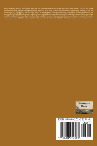 Stories contains the two Luke Hartwell short stories that were not incorporated into his expansive novel Desire. In the first story, "Michael," Ben cannot keep his mind off the handsome young wrestler sitting at the back of his world literature class. He fantasizes and fantasizes, and then he acts. The second story, "Baby Self Hate," is a sultry but funny story of sex and infatuation. Cam is angry but funny, purposeful but confused, and humorous but unexpectedly profound. Although sexy and sought after, Cam sees life darkly and takes solace in fishing. His relationship with a boy he meets in therapy is a wild, unpredictable ride. Hartwell provides the book the immediacy, honesty, passion, and tension that his readers have come to expect. Both stories are amorous, hilarious, and ridiculously unusual tales by the acclaimed author of Atom Heart John Beloved, Nathan's Story, Love Underneath, and Desire. Watersgreen House is an independent international book publisher with editorial staff in the UK and USA. One of our aims at Watersgreen House is to showcase same-sex affection in works by important gay and bisexual authors in ways which were not possible at the time the books were originally published. We also publish nonfiction, including textbooks, as well as contemporary fiction that is literary, unusual, and provocative.