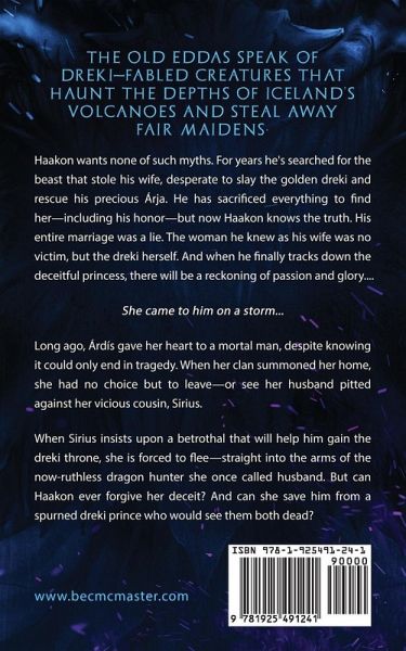 The old eddas speak of dreki-fabled creatures that haunt the depths of Iceland's volcanoes and steal away fair maidens. Haakon wants none of such myths. For years he's searched for the beast that stole his wife, desperate to slay the golden dreki and rescue his precious Árja. He has sacrificed everything to find her-including his honor-but now Haakon knows the truth. His entire marriage was a lie. The woman he knew as his wife was no victim, but the dreki herself. And when he finally tracks down the deceitful princess, there will be a reckoning of passion and glory.... She came to him on a storm... Long ago, Árdís gave her heart to a mortal man, despite knowing it could only end in tragedy. When her clan summoned her home, she had no choice but to leave-or see her husband pitted against her vicious cousin, Sirius. When Sirius insists upon a betrothal that will help him gain the dreki throne, she is forced to flee-straight into the arms of the now-ruthless dragon hunter she once called husband. But can Haakon ever forgive her deceit? And can she save him from a spurned dreki prince who would see them both dead?