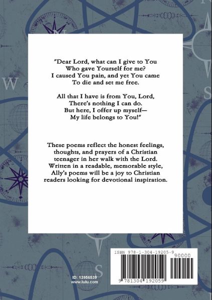 These poems reflect the honest feelings, thoughts, and prayers of a Christian teenager in her walk with the Lord. Written in a readable, memorable style, Ally's poems will be a joy to Christian readers looking for devotional inspiration.