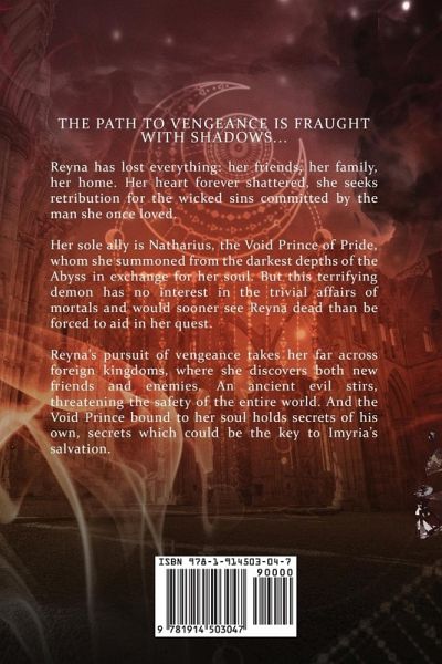 The path to vengeance is fraught with shadows... Reyna has lost everything: her friends, her family, her home. Her heart forever shattered, she seeks retribution for the wicked sins committed by the man she once loved. Her sole ally is Natharius, the Void Prince of Pride, whom she summoned from the darkest depths of the Abyss in exchange for her soul. But this terrifying demon has no interest in the trivial affairs of mortals and would sooner see Reyna dead than be forced to aid in her quest. Reyna's pursuit of vengeance takes her far across foreign kingdoms, where she discovers both new friends and enemies. An ancient evil stirs, threatening the safety of the entire world. And the Void Prince bound to her soul holds secrets of his own, secrets which could be the key to Imyria's salvation.