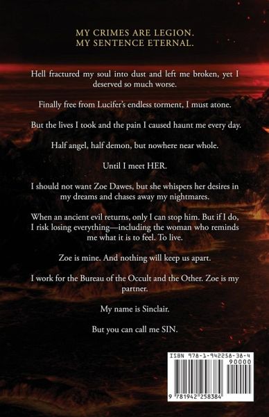 My crimes are legion. My sentence eternal. Hell fractured my soul into dust and left me broken, yet I deserved so much worse. Finally free from Lucifer's torment, I must atone. But the lives I took and the pain I caused haunt me every day. Half angel, half demon, but nowhere near whole. Until I meet her. I should not want Zoe Dawes, but she whispers her desires in my dreams and chases away my nightmares. When an ancient evil returns, only I can stop him. But if I do, I risk losing everything-including the woman who reminds me what it is to feel. To live. Zoe is mine. And nothing will keep us apart. I work for the Bureau of the Occult and the Other. Zoe is my partner. My name is Sinclair. But you can call me Sin.