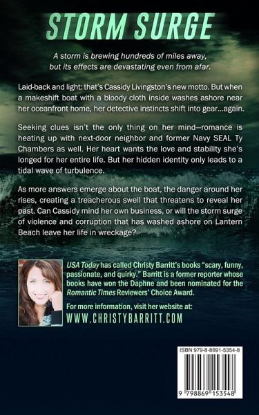A storm is brewing hundreds of miles away, but its effects are devastating even from afar. Laid-back and light: that's Cassidy Livingston's new motto. But when a makeshift boat with a bloody cloth inside washes ashore near her oceanfront home, her detective instincts shift into gear . . . again. Seeking clues isn't the only thing on her mind--romance is heating up with next-door neighbor and former Navy SEAL Ty Chambers as well. Her heart wants the love and stability she's longed for her entire life. But her hidden identity only leads to a tidal wave of turbulence. As more answers emerge about the boat, the danger around her rises, creating a treacherous swell that threatens to reveal her past. Can Cassidy mind her own business, or will the storm surge of violence and corruption that has washed ashore on Lantern Beach leave her life in wreckage?