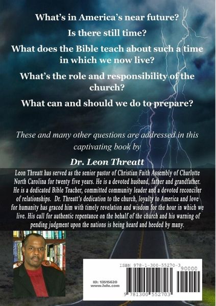 In Dr. Leon Threatt's premiere book release, Storm Warnings, he communicates the state of America, the Church, and Society at large and gives us an in-depth look at what is soon to occur in America and the nations of the world. Dr. Threatt also shares practical ways to prepare your family, community and church for the challenges that will soon occur, while teaching how we can hold on to our peace and well being in the midst of it all. This publication is essential for every leader's library.