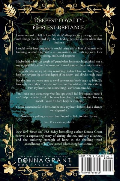 Deepest loyalty. Fiercest defiance. I never wanted to fall in love. My sister's disappearance damaged me for such things. I've devoted my life to finding her-no matter where that leads me. I could never have imagined it would bring me to him. A human with haunting celadon eyes and a determination that rivals my own. He's strong, brash, and gorgeous. Maybe that's why I was caught off guard when he acknowledged that I was a covert agent. It's a secret few know, and if word gets out, I'm as good as dead. Too much rides on my identity remaining hidden. I have no choice but to help him navigate the perilous depths of the Below-and all who reside there. But the lines that were once so vivid between us slowly begin to blur. We have only each other to survive and trusting him with my life is one thing. With my heart...that's something I can't even consider. Yet, I can't stop wondering what his lips would feel like against mine. I can't help the ache I feel to be near him. And I can lie to him, but not myself. I crave his hard body next to me. I never wanted to fall in love...but he stole my heart before I had a chance to safeguard it. Now fate is pulling us apart, but I intend to fight for him. For us. Even if it means my death. New York Times and USA Today bestselling author Donna Grant weaves a captivating story of daring choices, unlikely alliances, and the enduring strength of hope in the thrilling third installment of her acclaimed Elven Kingdoms series.