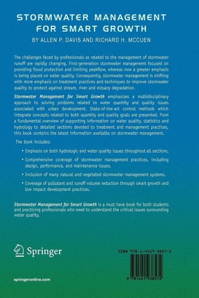 Land development to support population increases and shifts requires changes to the hydrologic cycle. Increased impervious area results in greater volumes of runoff, higher flow velocities, and increased pollutant fluxes to local waterways. As we learn more about the negative impacts of these outcomes, it becomes more important to develop and manage land in a smart manner that reduces these impacts. This text provides the reader with background information on hydrology and water quality issues that are necessary to understand many of the environmental problems associated with land development and growth. The variability of runoff" flows and pollutant concentrations, however, makes the performance of simple technologies erratic and predicting and modeling their performance difficult. Chapters on statistics and modeling are included to provide the proper background and tools. The latter chapters of the text cover many of the different technologies that can be employed to address runoff flows and improve water quality. These chapters take a design approach with specific examples provided for many of the management practices. A number of methods are currently available for addressing the problems associated with stormwater runoff quality from urban areas; more continue to be developed as research is advanced and interest in this subject continues to surge. Traditionally, techniques for the improvement of runoff quality were borrowed applications from water and wastewater treatment, such as large sedimentation ponds Recently, increased interest has been placed on using natural systems to improve water quality.