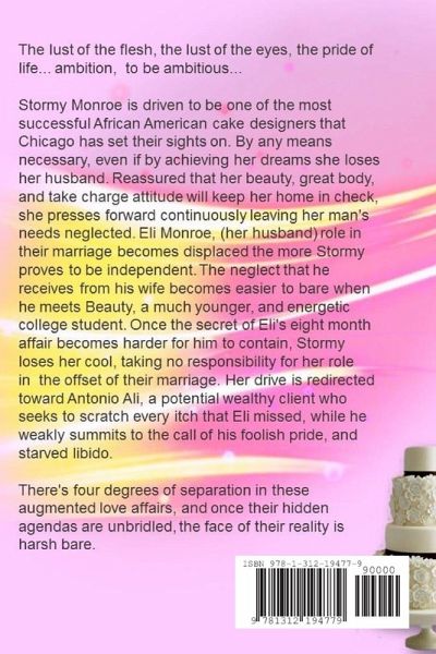 Stormy Monroe is driven to be one of the most successful cake designers that chicago has set their sights on. By any means necessary, even if by achieving her dreams she loses her husband.Reassured that her beauty,great body, and take charge attitude will keep her home in check,She presses forward continuously leaving her man's needs neglected. Eli Monroe,(her husband) role in their marriage becomes displaced the more Stormy proves to be independent. The neglect that he recieves from his wife becomes easier to bare when he meets Beauty, a much younger college student. Once the secret of Eli's eight month affair becomes harder for him to contain, Stormy loses her cool, taking no responsibility for her role in the offset of their marriage. Her drive is redirected toward Antonio Ali, a wealthy client who seeks to scratch the itch that Eli missed.There's four degrees of separation in these augmented love affairs. Once their agendas are unbridled, the face of their reality is harsh to bare.