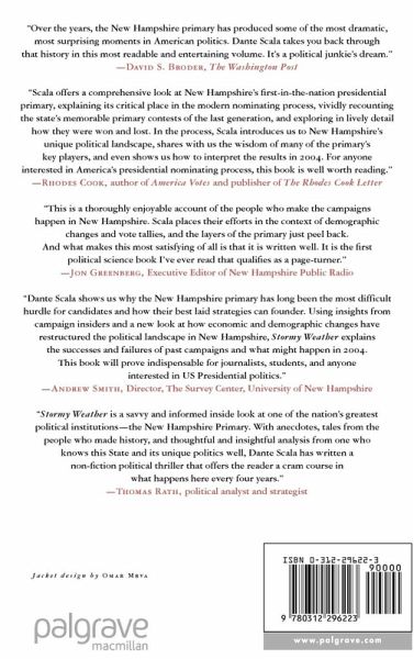 "Stormy Weather is a savvy and informed inside look at one the nation's greatest political institutions - The New Hampshire Primary....Dante Scala has written a non-fiction political thriller that offers the reader a cram course in what happens here every four years." - Thomas Rath, political analyst and strategist