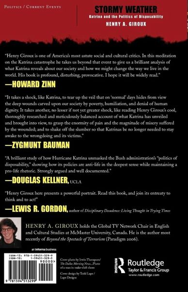 "By far the single most important account and analysis of the Katrina catastrophe." David L. Clark, McMaster University In his newest provocative book, prominent social critic Henry A. Giroux shows how the tragedy and suffering in the aftermath of Hurricane Katrina signals a much larger crisis in the United States-one that threatens the very nature of individual freedom and inclusive democracy. This crisis extends far beyond matters of leadership, governance, or the Bush administration. It is a crisis that strikes at the very heart of democracy and must be understood within a broader set of antidemocratic forces that not only made the social disaster underlying Katrina possible, but also contribute to an emerging authoritarianism in the United States. Questions regarding who is going to die and who is going to live are driving a new form of authoritarianism in the United States. Within this form of "dirty democracy" a new and more insidious set of forces-embedded in our global economy-have largely given up on the sanctity of human life, rendering some groups as disposable and privileging others. Giroux offers up a vision of hope that creates the conditions for multiple collective and global struggles that refuse to use politics as an act of war and markets as the measure of democracy. Making human beings superfluous is the essence of totalitarianism, and democracy is the antidote in urgent need of being reclaimed. Katrina will keep the hope of such a struggle alive because for many of us the images of those floating bodies serve as a desperate reminder of what it means when justice, as the lifeblood of democracy, becomes cold and indifferent.