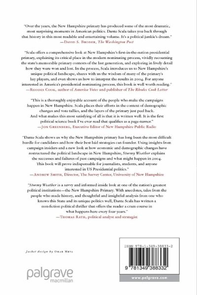 "Stormy Weather is a savvy and informed inside look at one the nation's greatest political institutions - The New Hampshire Primary....Dante Scala has written a non-fiction political thriller that offers the reader a cram course in what happens here every four years." - Thomas Rath, political analyst and strategist