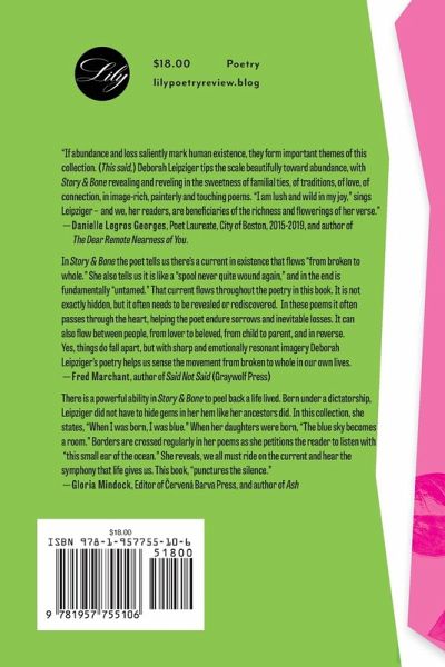 The poems in Deborah Leipziger's Story & Bone are centered around connection, the forging of it, the strength of it and the loss of it. She writes of the connections between mother and daughter and between the daughter and her own three daughters. She writes of the broken and whole sensual and emotional connections between lovers and partners. She explores her connection with nature [especially flowers], with Judaism, with her body, her past, her intentions. This leads to strong, quirky and intelligent poems. --Marge Piercy, Author, Novelist, Poet, Activist, and Feminist icon