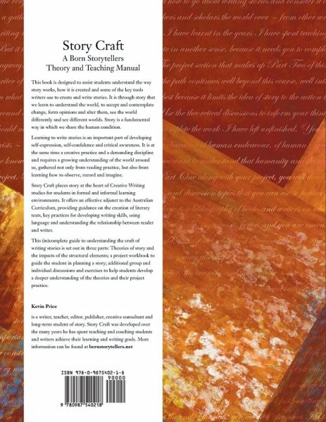 This book is designed to assist students understand the way story works, how it is created and some of the key tools writers use to create and write stories. It is through story that we learn to understand the world, to accept and contemplate change, form opinions and alter them, see the world differently and see different worlds. Story is a fundamental way in which we share the human condition. Learning to write stories is an important part of developing self-expression, self-confidence and critical awareness. It is at the same time a creative practice and a demanding discipline and requires a growing understanding of the world around us, gathered not only from reading practice, but also from learning how to observe, record and imagine. Story Craft places story at the heart of Creative Writing studies for students in formal and informal learning environments. It offers an effective adjunct to the Australian Curriculum, providing guidance on the creation of literary texts, key practices for developing writing skills, using language and understanding the relationship between reader and writer. This (in)complete guide to understanding the craft of writing stories is set out in three parts: Theories of story and the impacts of the structural elements; a project workbook to guide the student in planning a story; additional group and individual discussions and exercises to help students develop a deeper understanding of the theories and their project practice.
