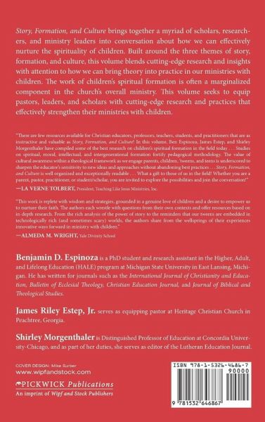 Story, Formation, and Culture brings together a myriad of scholars, researchers, and ministry leaders into conversation about how we can effectively nurture the spirituality of children. Built around the three themes of story, formation, and culture, this volume blends cutting-edge research and insights with attention to how we can bring theory into practice in our ministries with children. The work of children's spiritual formation is often a marginalized component in the church's overall ministry. This volume seeks to equip pastors, leaders, and scholars with cutting-edge research and practices that effectively strengthen their ministries with children. ""There are few resources available for Christian educators, professors, teachers, students, and practitioners that are as instructive and valuable as Story, Formation, and Culture! In this volume, Ben Espinoza, James Estep, and Shirley Morgenthaler have compiled some of the best research on children's spiritual formation in the field today . . . Studies on spiritual, moral, intellectual, and intergenerational formation fortify pedagogical methodology. The value of cultural awareness within a theological framework as we engage parents, children, 'tweens, and teens is underscored to sharpen the educator's sensitivity to new ideas and approaches without abandoning best practices . . . Story, Formation, and Culture is well organized and exceptionally readable . . . What a gift to those of us in the field! Whether you are a parent, pastor, practitioner, or student/scholar, you are invited to explore the possibilities and join the conversation!"" --La Verne Tolbert, President, Teaching Like Jesus Ministries, Inc. ""This work is replete with wisdom and strategies, grounded in a genuine love of children and a desire to empower us to nurture their faith. The authors each wrestle with questions from their own contexts and offer resources based on in-depth research. From the rich analysis of the power of story to the reminders that our tweens are embedded in technologically rich (and sometimes scary) worlds, the authors share from the wellsprings of their experiences innovative ways forward in ministry with children."" --Almeda M. Wright, Yale Divinity School Benjamin D. Espinoza, is a PhD student and research assistant in the Higher, Adult, and Lifelong Education (HALE) program at Michigan State University in East Lansing, Michigan. He has written for journals such as the International Journal of Christianity and Education, Bulletin of Ecclesial Theology, Christian Education Journal, and Journal of Biblical and Theological Studies. James Riley Estep, Jr., serves as equipping pastor at Heritage Christian Church in Peachtree, Georgia. Shirley Morgenthaler is Distinguished Professor of Education at Concordia University-Chicago, and as part of her duties, she serves as editor of the Lutheran Education Journal.