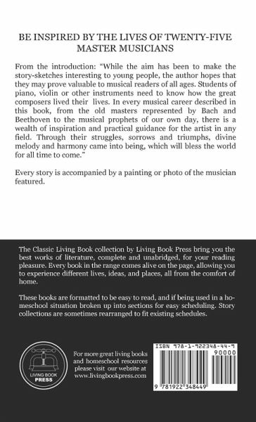 From the introduction: "While the aim has been to make the story-sketches interesting to young people, the author hopes that they may prove valuable to musical readers of all ages. Students of piano, violin or other instruments need to know how the great composers lived their lives. In every musical career described in this book, from the old masters represented by Bach and Beethoven to the musical prophets of our own day, there is a wealth of inspiration and practical guidance for the artist in any field. Through their struggles, sorrows and triumphs, divine melody and harmony came into being, which will bless the world for all time to come." Every story is accompanied by a painting or photo of the musician featured.