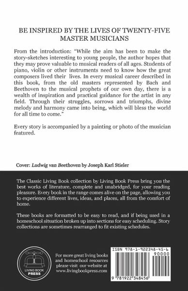 From the introduction: "While the aim has been to make the story-sketches interesting to young people, the author hopes that they may prove valuable to musical readers of all ages. Students of piano, violin or other instruments need to know how the great composers lived their lives. In every musical career described in this book, from the old masters represented by Bach and Beethoven to the musical prophets of our own day, there is a wealth of inspiration and practical guidance for the artist in any field. Through their struggles, sorrows and triumphs, divine melody and harmony came into being, which will bless the world for all time to come." Every story is accompanied by a painting or photo of the musician featured.