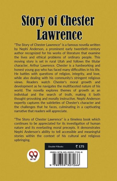 "The Story of Chester Lawrence" is a well-known novella written by Nephi Anderson, an outstanding early twentieth-century creator diagnosed for his works of literature that observe the lives and ethical problems of everyday humans. This transferring tale is about in rural Utah and follows the titular character, Arthur Lawrence. Chester is a hardworking and honest younger guy who has faced many problems in his lifestyles. He battles with questions of religion, integrity, and love, whilst also coping with his network's stringent non-secular perspectives. Readers watch Chester's ethical increase and development as he navigates the multifaceted nature of his international. The novella explores topics of increase as an individual and the look for reality, making it both idea-scary and morally instructive. Nephi Anderson expertly captures the subtleties of Chester's character and the demanding situations that he faces, culminating in a fascinating narrative that readers will appreciate. "The Story of Chester Lawrence" is a timeless book that remains appreciated for its research of human nature and its eternal ethical precepts. It demonstrates Nephi Anderson's ability to tell on hand and meaningful testimonies within the context of his cultural and religious upbringing.