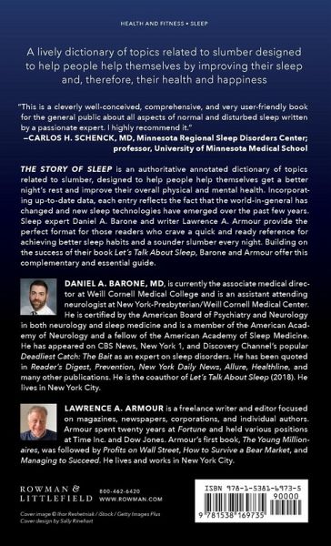 A lively dictionary of topics related to slumber designed to help people help themselves by improving their sleep and, therefore, their health and happiness. The Story of Sleep is a lively annotated dictionary of topics related to slumber, designed to help people help themselves get a better night's rest and improve their overall physical and mental health. Incorporating up-to-date data, each entry reflects the fact that the world-in-general has changed and new sleep technologies have been developed over the past few years. Sleep expert Daniel Barone and writer Lawrence Armour provide the perfect format for those readers who crave a quick and ready reference for achieving better sleep habits and a sounder slumber every night. Building on the success of their book Let's Talk About Sleep, Barone and Armour offer this complementary and essential guide.