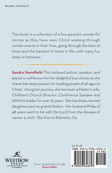 Sandra Henefield This beloved author, speaker, and pianist is well known for her delightful true stories as she shares her deep passion for leading people of all ages to Christ. Along her journey, she has been a Pastor's wife, Children's Church Director, Conference Speaker and AWANA leader for over 25 years. She has three married daughters and six grandchildren. Her husband Philip of 48 years went to be with the Lord from the disease of cancer in 2017. She lives in Palmetto, Ga.