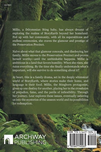 Millie, a Ddrymmian Sting baby, has always dreamt of exploring the realms of StoryEarth beyond her homeland. Fed up with her community, with all its superstitions and endless ceremonies, she craves the glamour and prestige of the Preservation Precinct. Naïve about what that glamour conceals, and disobeying her family, Millie moves to the Preservation Precinct and proves herself worthy-until the unthinkable happens. Millie is ambitious in a land that favors humility. When she rises, she ruins everything. By the time she finally understands what's important, will she survive to do something about it?