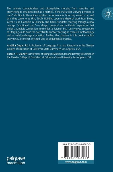 This volume conceptualizes and distinguishes storying from narrative and storytelling to establish itself as a method. It theorizes that storying pertains to ones' identity, to the unique positions of who one is, how they came to be, and why they came to be (Raj, 2019). Building upon foundational work from Freire, Greene, and Clandinin & Connelly, this book elucidates storying through a new concept "emotional truth"--a deeply personal and authentic experience that builds a tangible connection from teller to listener. Such an involved conception of Storying could have the potential to anchor storying as research methodology and as valid pedagogical practice. Further, the chapters in this book establish storying as a concept, method, and as pedagogical practice.