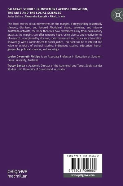 This book stories social movements on the margins. Foregrounding historically silenced, dismissed and ignored Aboriginal, young, voiceless, and intersex Australian activists, the book theorizes how movement away from exclusionary praxis at the margins can offer renewed hope. Using diverse and creative forms of research underpinned by storying, social movement and critical race theoretical knowledge with a commitment to social justice, this book will be of interest and value to scholars of cultural studies, Indigenous studies, education, human geography, political sciences, and sociology.