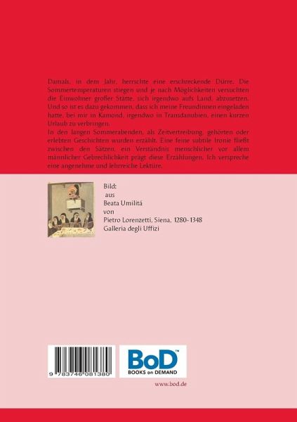 Damals, in dem Jahr, herrschte eine erschreckende Dürre. Die Sommertemperaturen stiegen und je nach Möglichkeiten versuchten die Einwohner großer Städte, sich irgendwo aufs Land, abzusetzen. Und so ist es dazu gekommen, dass ich meine Freundinnen eingeladen hatte, bei mir in Kamond, irgendwo in Transdanubien, einen kurzen Urlaub zu verbringen.In den langen Sommerabenden, als Zeitvertreibung, gehörten oder erlebten Geschichten wurden erzählt. Eine feine subtile Ironie fließt zwischen den Sätzen, ein Verständnis menschlicher, vor allem männlicher, Gebrechlichkeit prägt diese Erzählungen. Ich verspreche eine angenehme und lehrreiche Lektüre.