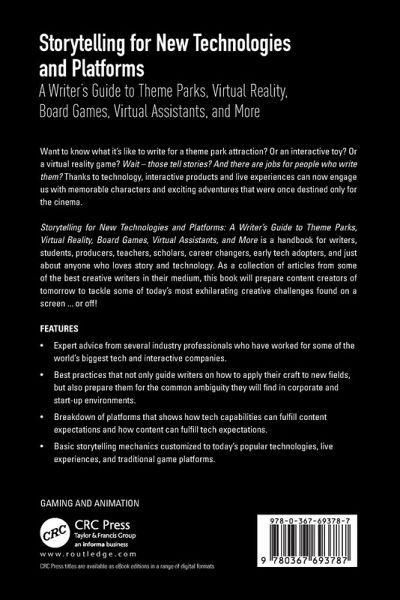 Storytelling for New Technologies and Platforms: A Writer's Guide to Theme Parks, Virtual Reality, Board Games, Virtual Assistants, and More is a handbook for writers, students, producers, teachers, scholars, career changers, early tech adopters, and just about anyone who loves story and technology. As a collection of articles from some of the best creative writers in their medium, this book will prepare content creators of tomorrow to tackle some of today's most exhilarating creative challenges found on a screen ... or off!