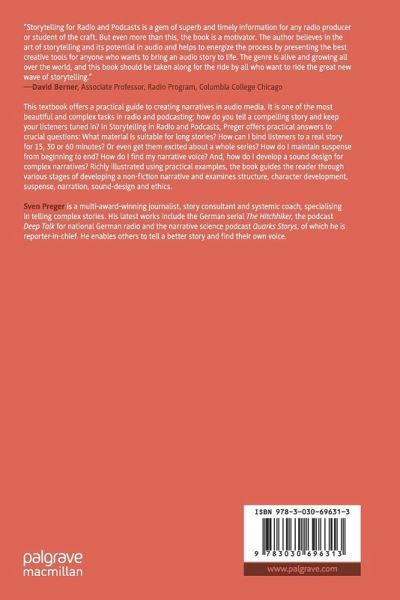 This textbook offers a practical guide to creating narratives in audio media. It is one of the most beautiful and complex tasks in radio and podcasting: how do you tell a compelling story and keep your listeners tuned in? In Storytelling in Radio and Podcasts, Preger offers practical answers to crucial questions: What material is suitable for long stories? How can I bind listeners to a real story for 15, 30 or 60 minutes? Or even get them excited about a whole series? How do I maintain suspense from beginning to end? How do I find my narrative voice? And, how do I develop a sound design for complex narratives? Richly illustrated using practical examples, the book guides the reader through various stages of developing a non-fiction narrative and examines structure, character development, suspense, narration, sound-design and ethics.
