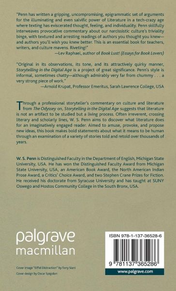"This book is a delight to sample as well as to read straight through. Not so much an argument as a series of positions taken - and wide-ranging, well-considered ones - Storytelling in a Digital Age offers the distillate of a lifetime of reading and writing and teaching. Wholly, W. S. Penn's text earns its final sentence: 'Literature is a little work for a lot of joy.'" - Nicholas Delbanco, Robert Frost Distinguished University Professor of English, University of Michigan, USA and author of The Art of Youth