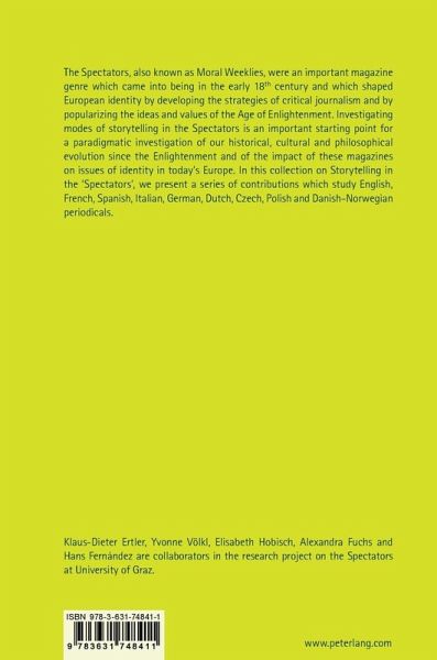 The Spectators, also known as Moral Weeklies, were an important magazine genre which came into being in the early 18th century and which shaped European identity by developing the strategies of critical journalism and by popularizing the ideas and values of the Age of Enlightenment. Investigating modes of storytelling in the Spectators is an important starting point for a paradigmatic investigation of our historical, cultural and philosophical evolution since the Enlightenment and the impact of these magazines on issues of identity in today's Europe. In this collection on 'Storytelling in the…mehr